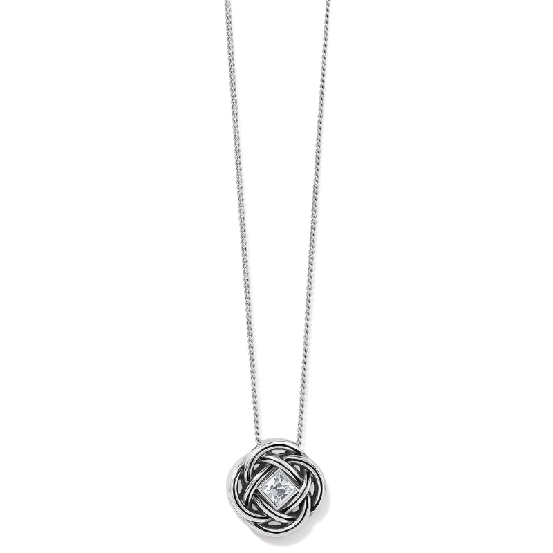 A touch of sparkle decorates the silver interlaced Celtic weave design necklace accented with a square glistening crystal – giving it more versatility to dress up, layer or mix with other silver pieces for an eclectic modern look.