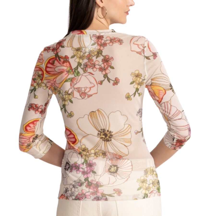 Embellished with bold floral patterns in vintage-inspired hues, the Kaia Mesh Tee is an easy layering piece. Crafted from a lightweight mesh fabric with a hint of stretch, this crewneck tee is finished with 3/4 sleeves. Pair with a coordinating blazer and a classic pencil skirt for a modern office look.