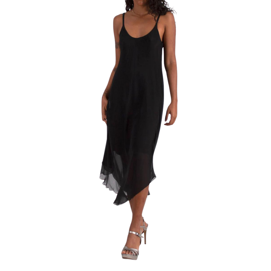 Elegant Midi Silk Dress with Adjustable Spaghetti Straps. Silk Exterior with a Soft Viscose Lining.